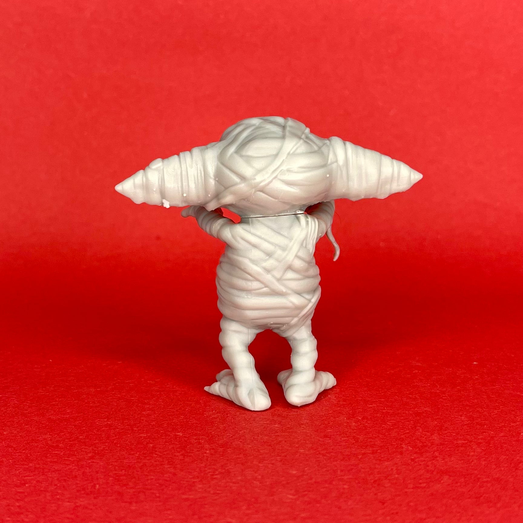 This miniature features Grogu, the beloved Star Wars character, in the style of a mummy. His tiny body is wrapped in bandages, with only his eyes peeking through.